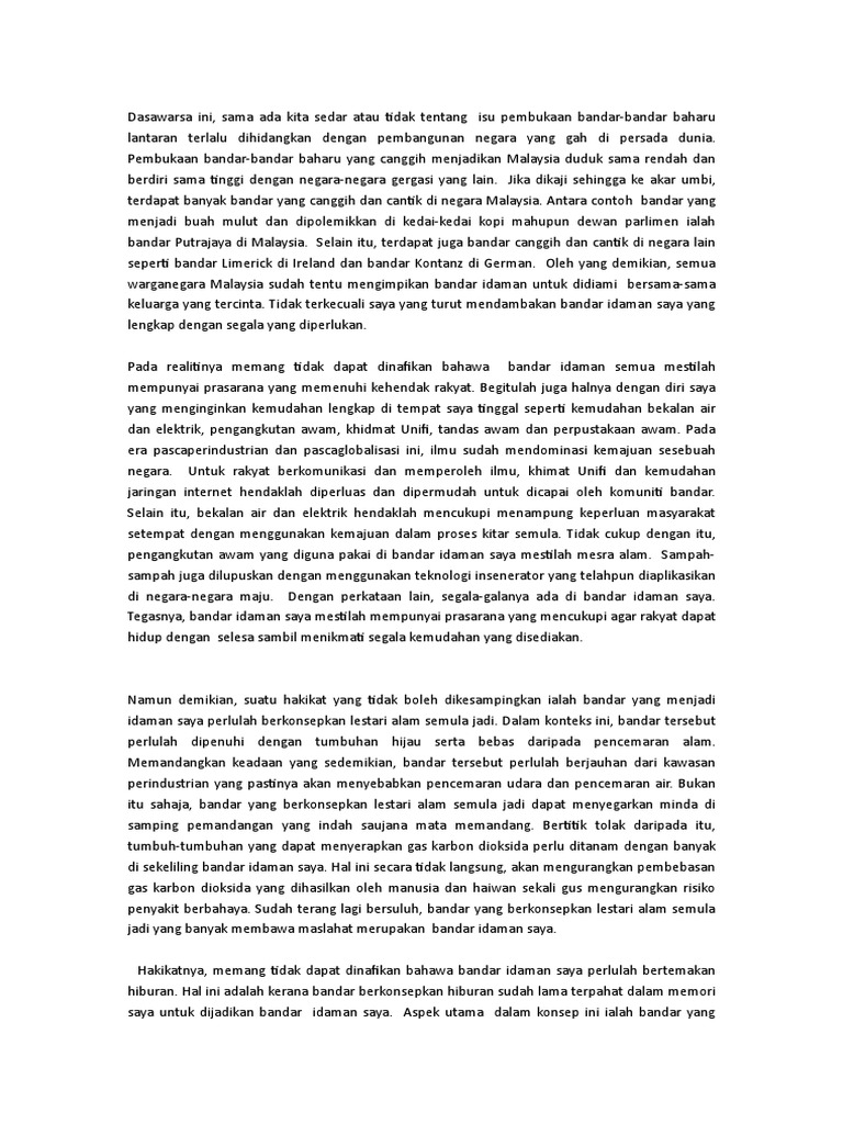 Related : Karangan Kepentingan Bandar Pintar Malaysia - Karangan ini tidak dibetulkan selepas disemak jadi kemungkinan terdapat beberapa kesalahan lewah dan kesalahan tatabahasa..