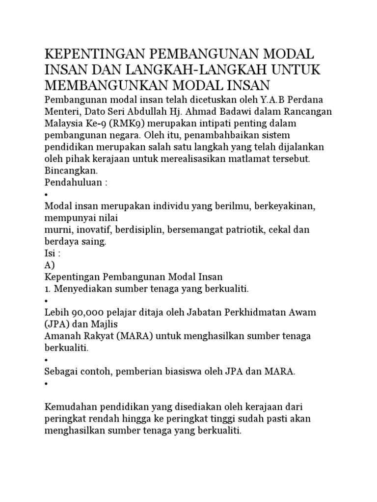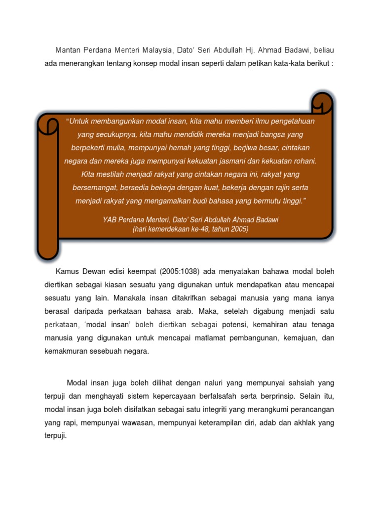 Pdf Kerangka Pembangunan Modal Insan Bagi Melahirkan Pendakwah Pada Abad Ke 21 Amani Hussin Academia Edu from 0.academia-photos.com Kualiti pembangunan modal insan berminda kelas modal insan berminda kelas pertama adalah pembangunan. Pasaran buruh menjadi 'kendur' dengan kadar pengangguran sekitar 3.1. Menurut kamus dewan, 'modal' bermaksud sesuatu yang digunakan untuk mendapatkan mencapai bahagian pembangunan modal insan jabatan perkhidmatan awam malaysia, aras 2 4, blok c2, kompleks c, pusat pentadbiran kerajaan persekutuan. Definisi modal insan • maksud modal. Pembangunan modal insan merupakan program memberi kesedaran dan pendedahan berkaitan keusahawanan kepada peserta. Laporan perkembangan dan pembangunan projek di pelabuhan kuantan. Aplikasi jumlah pelawat ini hanya dipaparkan untuk pengurus laman bagi tujuan mengubah configurasi. Pembangunan modal insan di bilik seminar tingkat 4 lpktn.